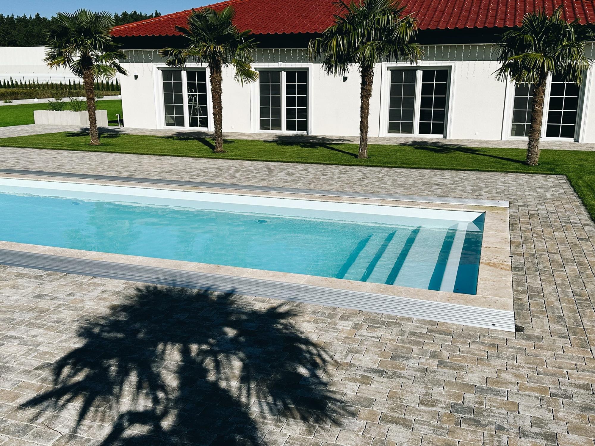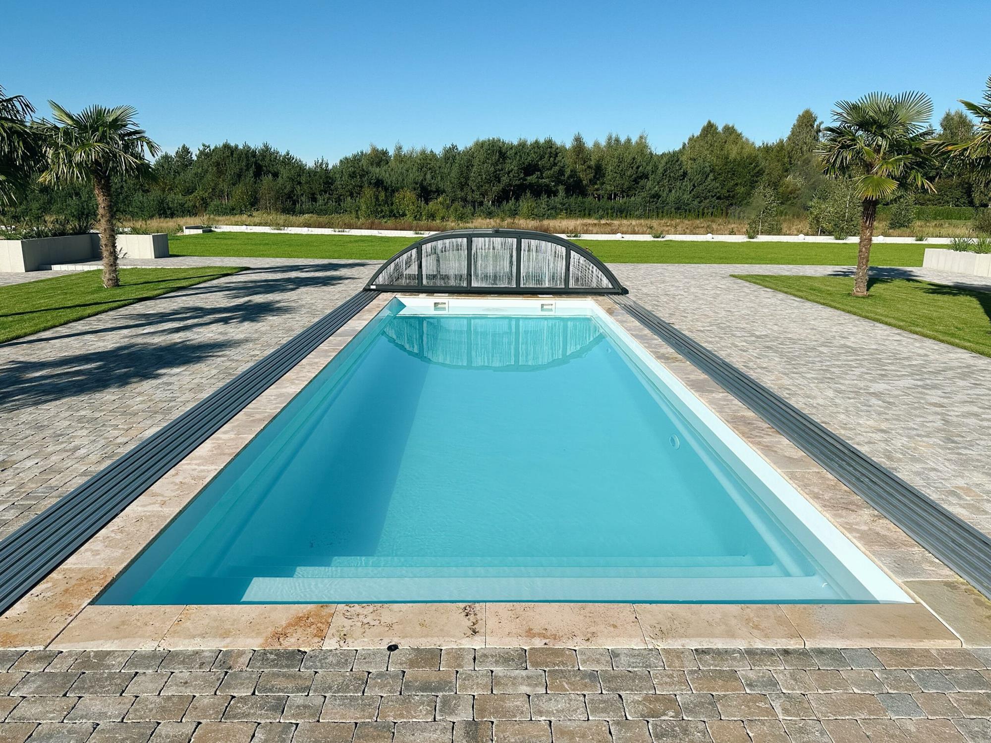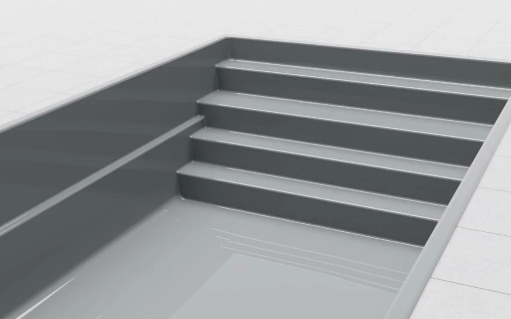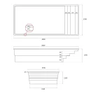 Dank seiner großzügigen, jedoch auch minimalistischen Form, die den aktuellen Trends entspricht, hat sich unser Gartenpool-Modell schnell zu einem Bestseller entwickelt. Die Form dieses rechteckigen Pools wurde für maximalen Komfort konzipiert – sowohl für diejenigen, die sich aktiv im Wasser aufhalten, als auch für diejenigen, die lieber auf den großzügigen Stufen entspannen.