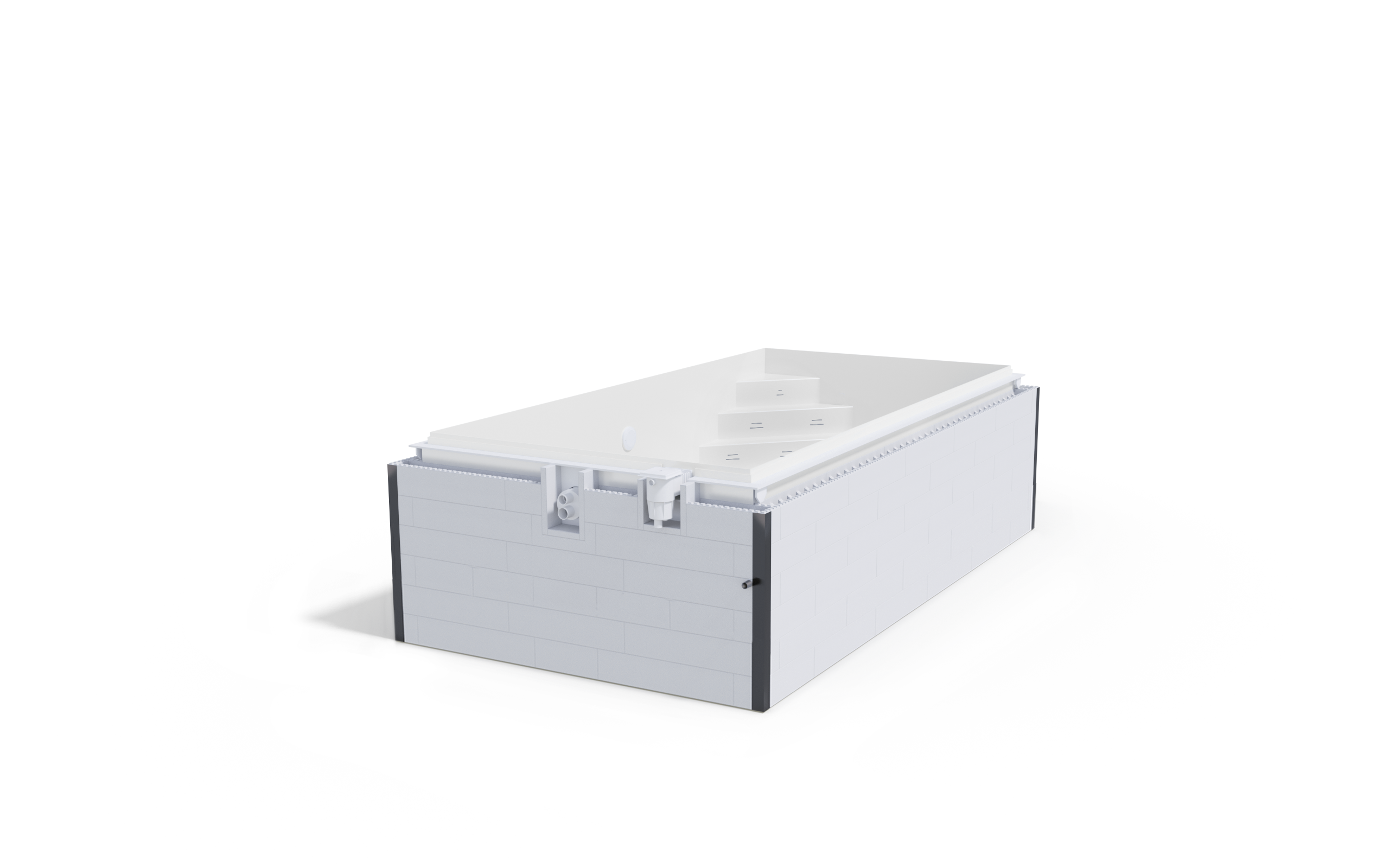 Die bei Lieferung bereits fest am Pool angebrachte Styropor-Hohlblockschalung lässt sich äußerst schnell und vor allem einfach mit Beton füllen, und spart Ihnen dabei noch bares Geld: Bei den G2 Pools von Albixon muss lediglich die Hohlkammer mit Beton ausgegossen werden, die vollständige Hinterfüllung des Beckens mit Beton entfällt. Auch die beidseitige Isolierung kommt Ihrem Geldbeutel zugute, da dank des niedrigen Wärmekoeffizienten und der optimalen Dämmung viel Energie eingespart wird.